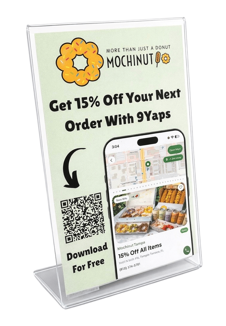 QR code stands are one of the most effective ways to drive repeat customers with 9Yaps.
